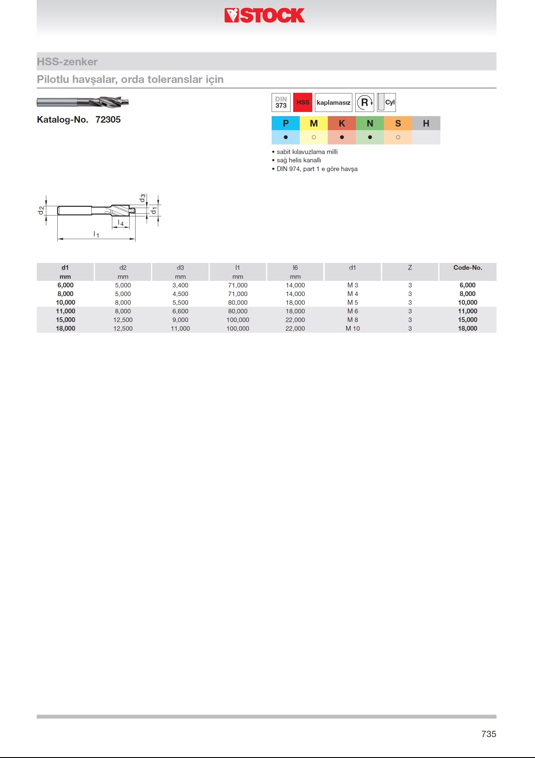 72305 HSS PİLOTLU ZENKER Z3 DIN373 İMBUS CIVATA BAŞLIĞI İÇİN adet